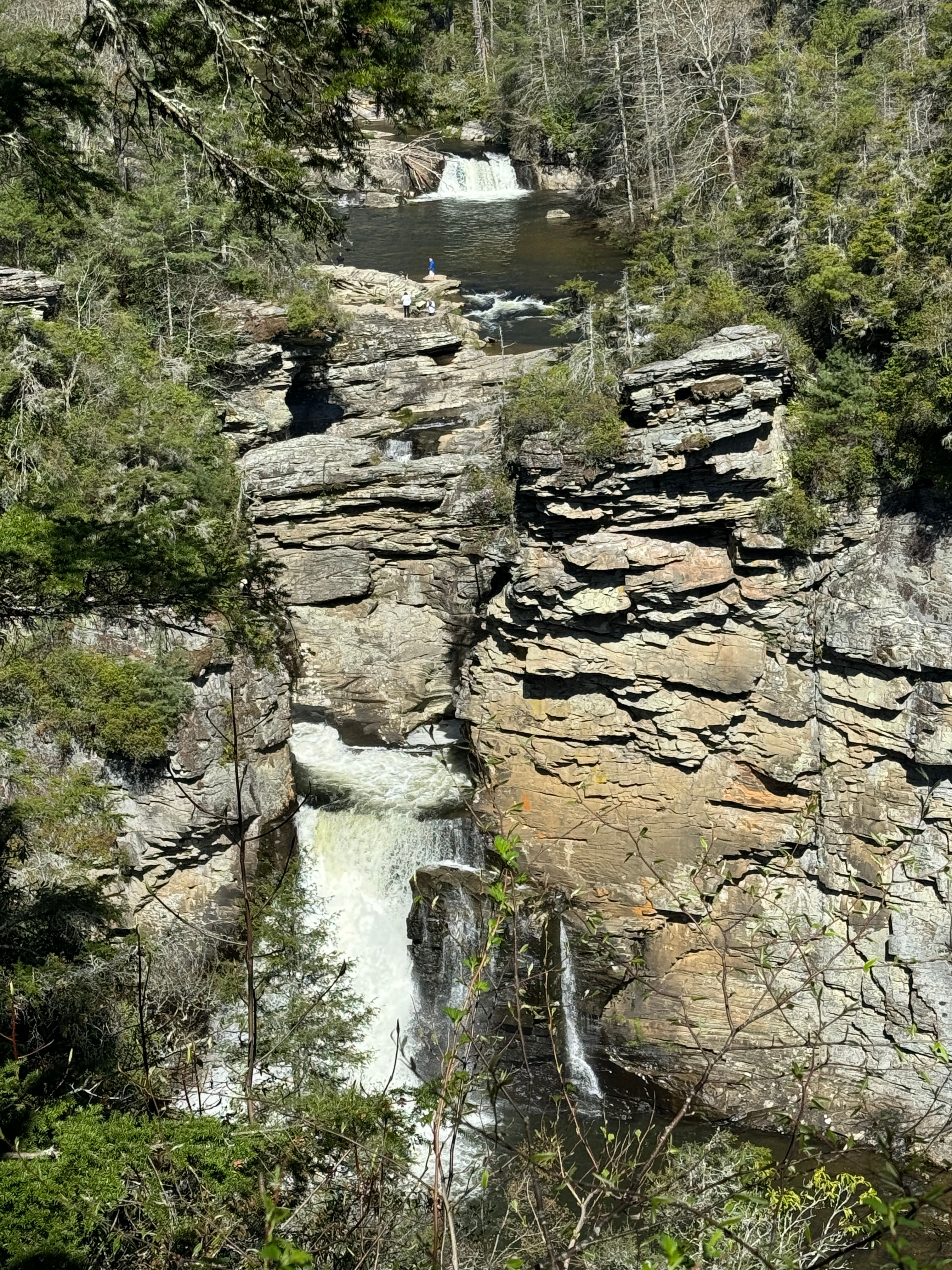 Just a few miles from the caverns is Linville Falls, regarded as the most famous waterfall in the Blue Ridge. A series of trails takes you to various viewpoints in which to enjoy the thundering, three-tiered cascades that flow over the Linville Gorge. The gorge is known as the “Grand Canyon of the Southern Appalachians.”